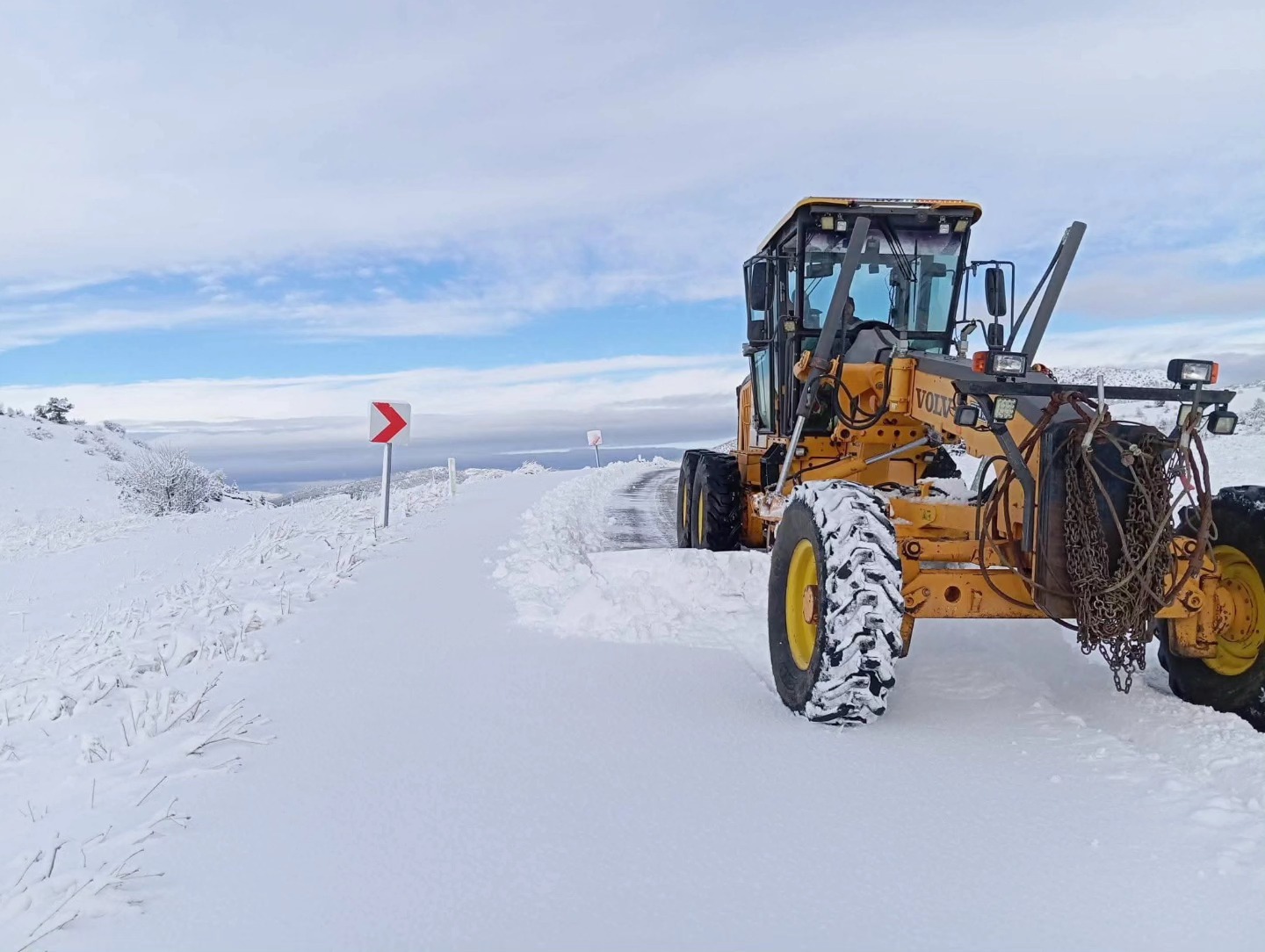 Büyükşehir Belediyesi ekiplerinin kar küreme ve yol açma faaliyetlerine devam ettiği, yolun ulaşıma açık tutulması için yoğun çaba sarf edildiği görüldü.